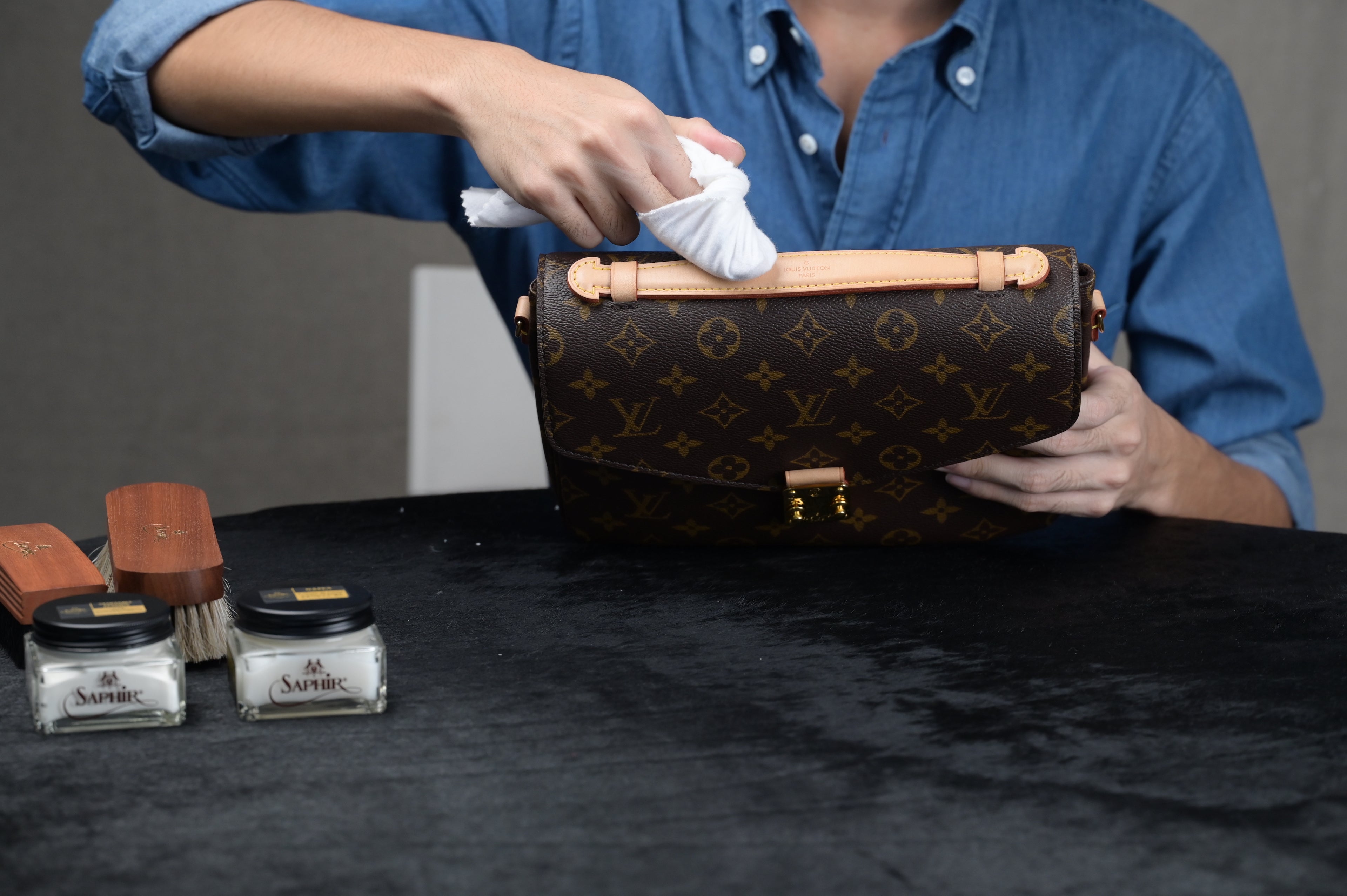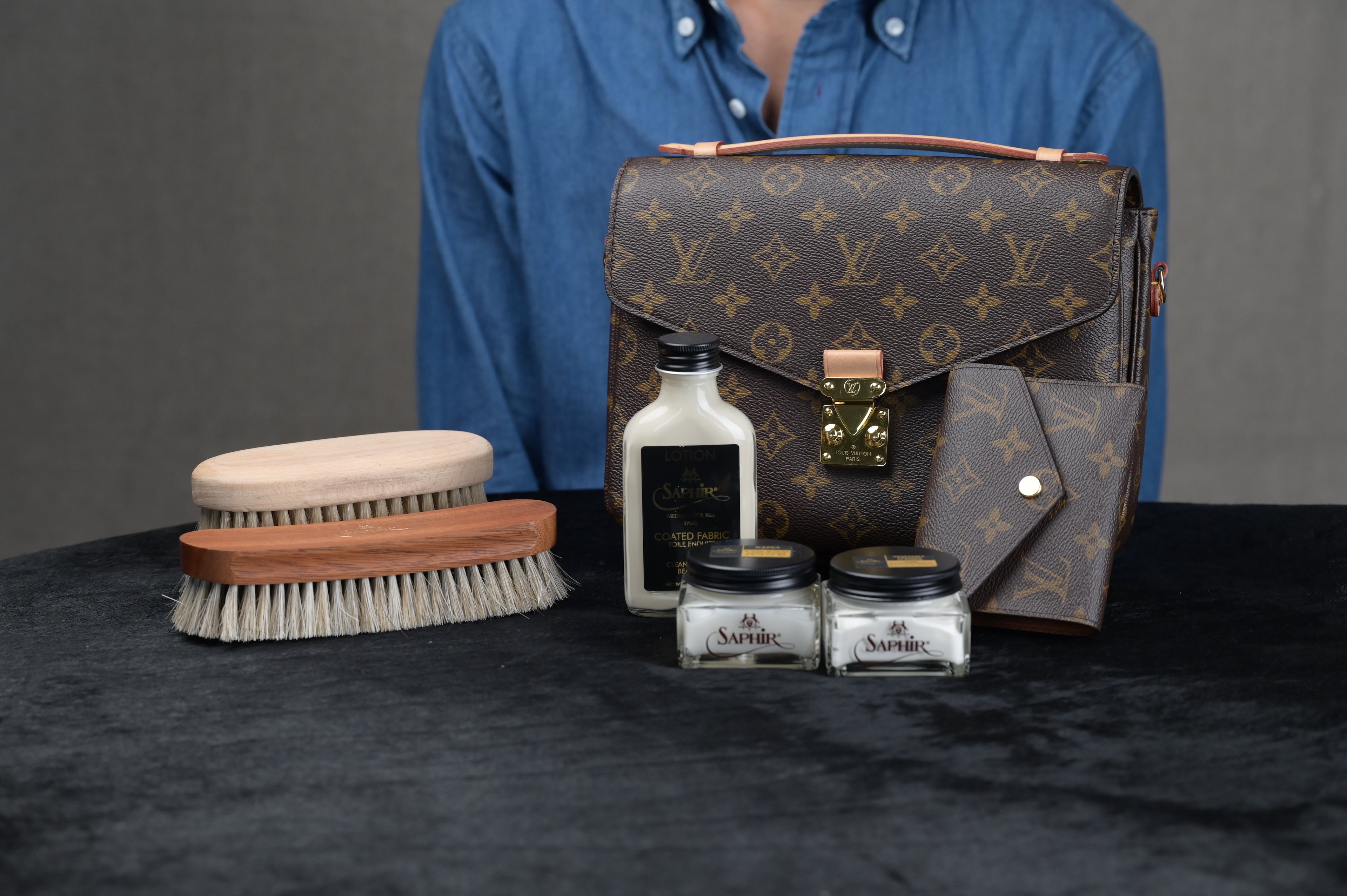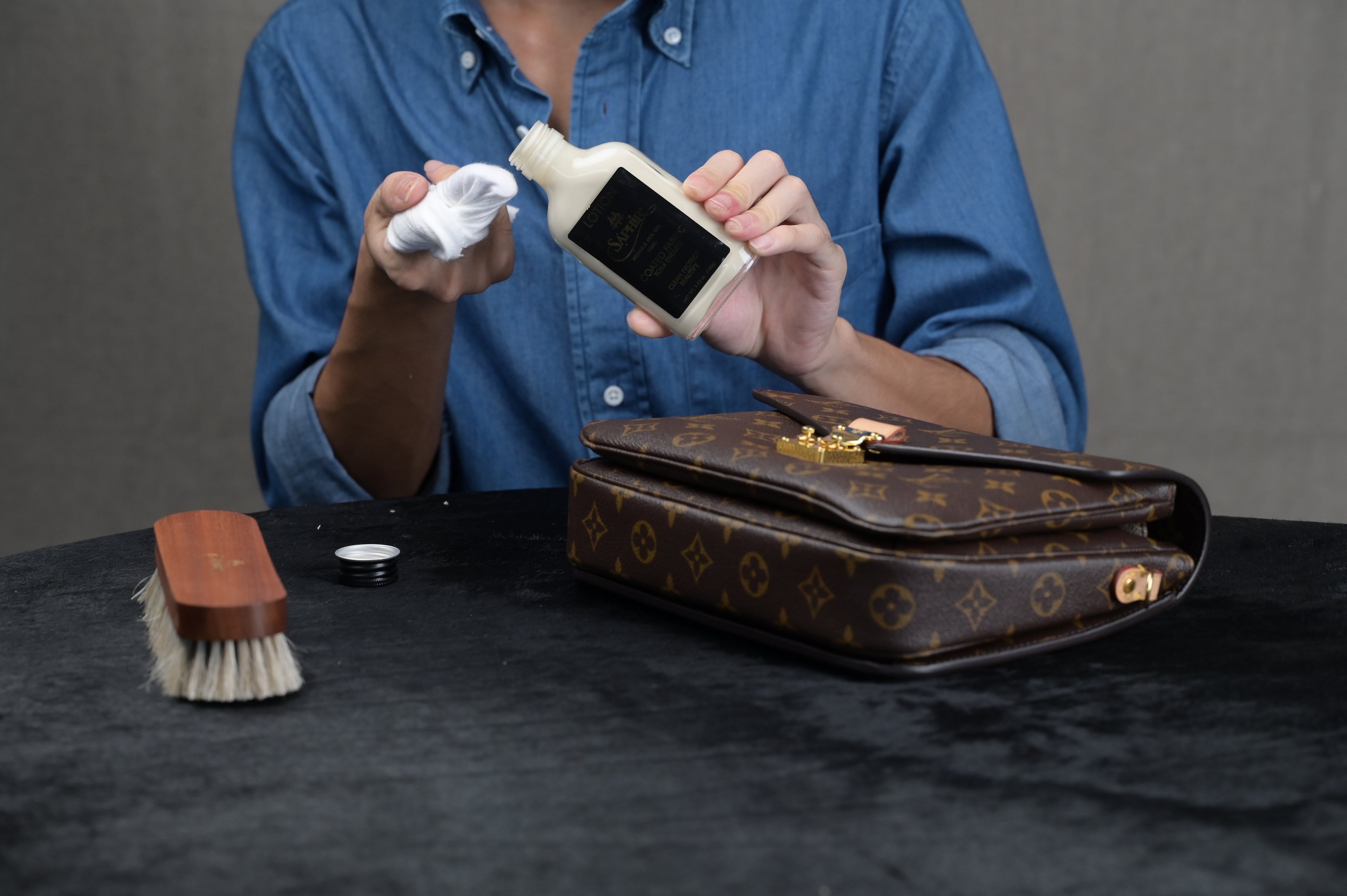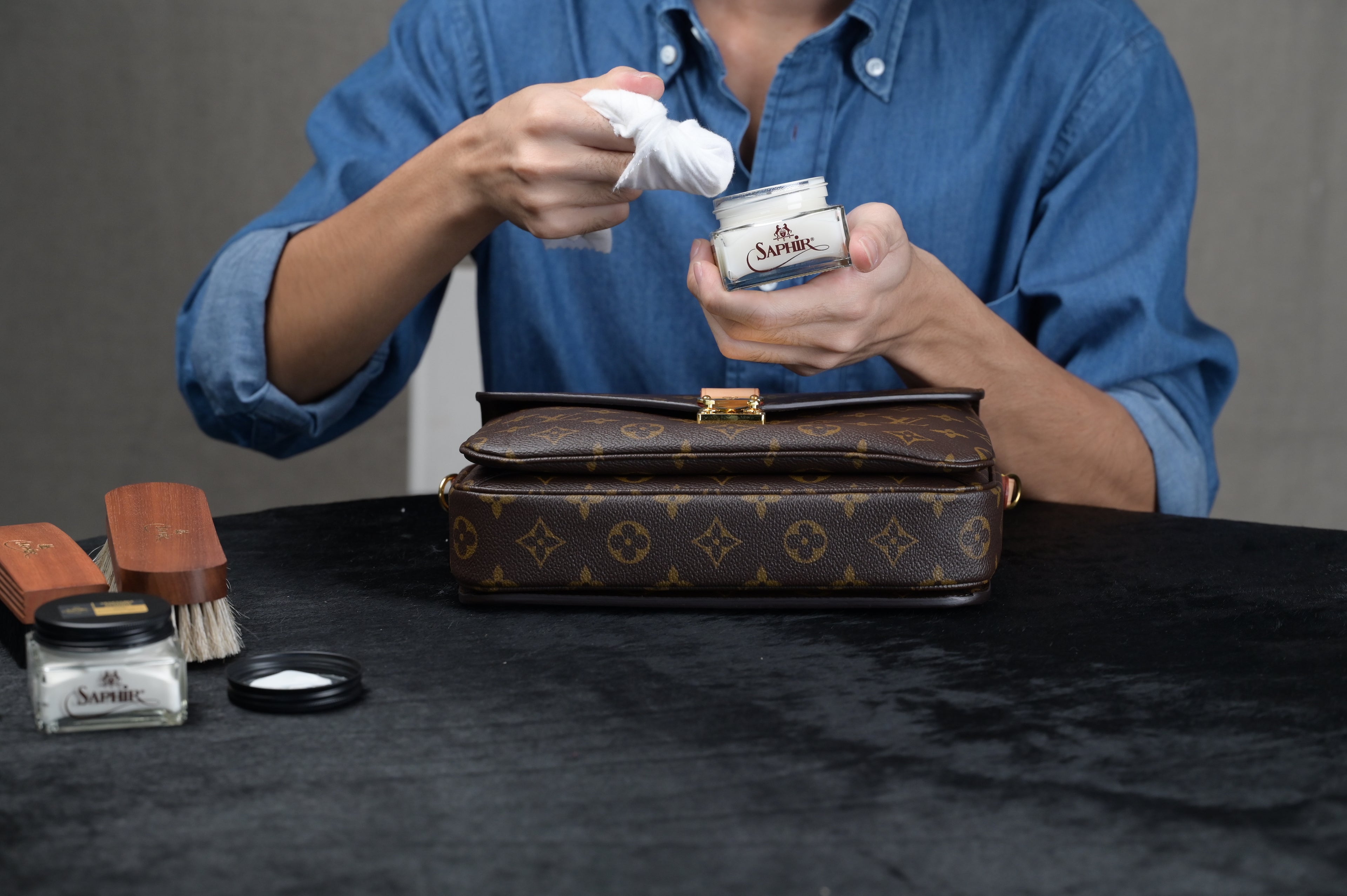 Just like your leather shoes, bags also need to be prepared first before proceeding with any form of restoration or treatment. To begin, brush off any superficial dust on your coated fabric bag using a horsehair brush. Hold the brush firmly and brush in a ‘back-and-forth’ motion over the entire bag.