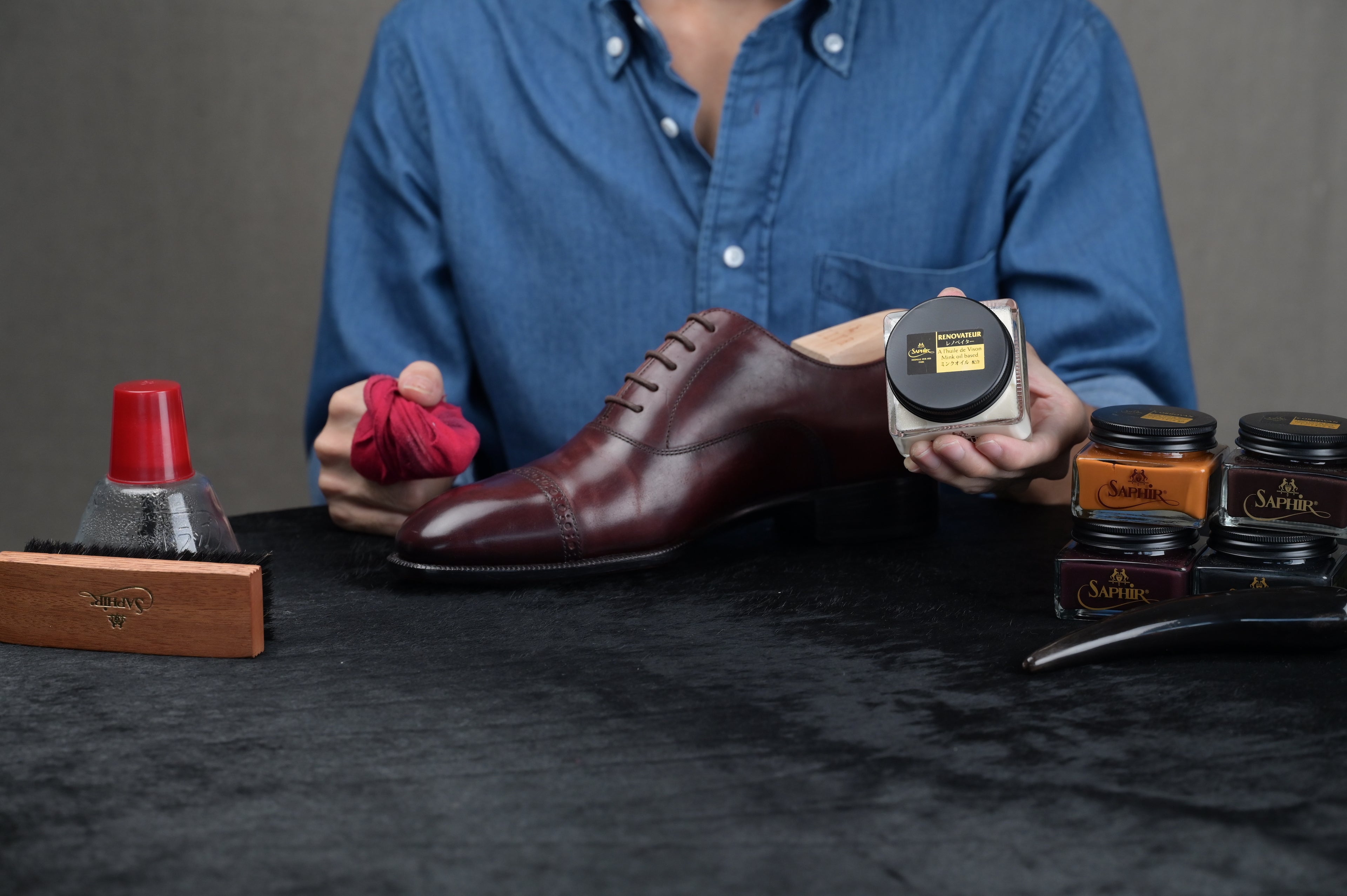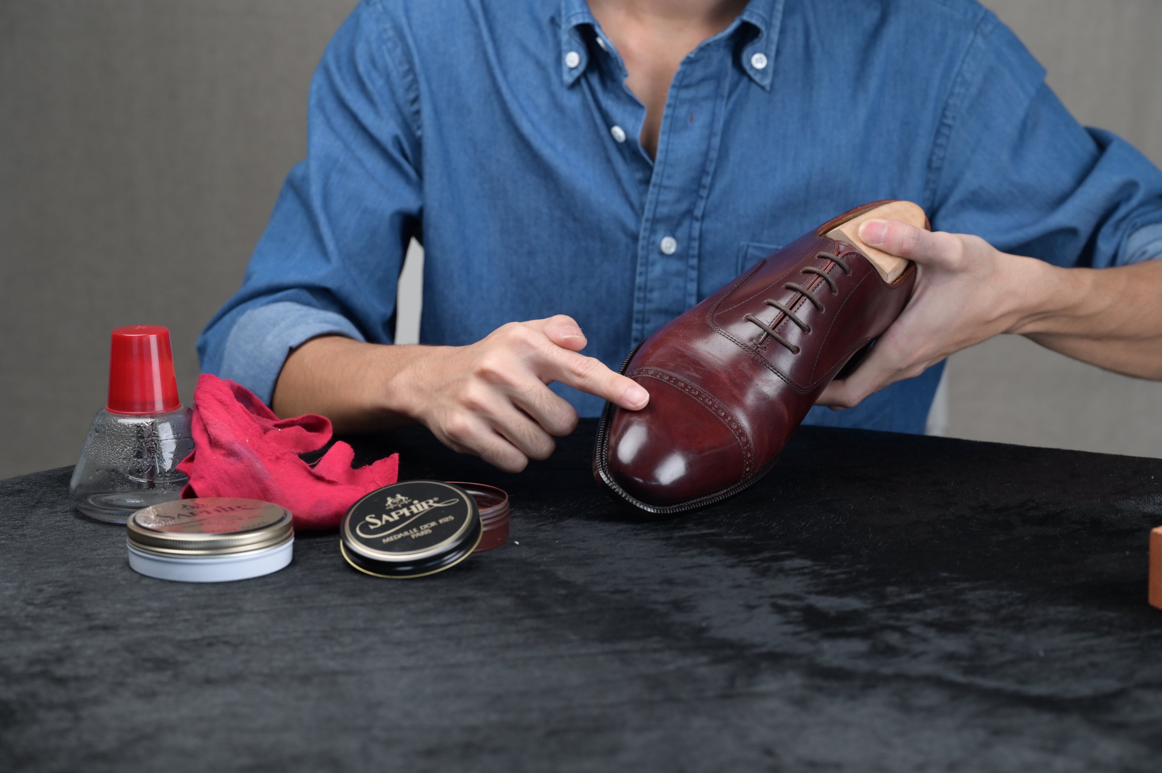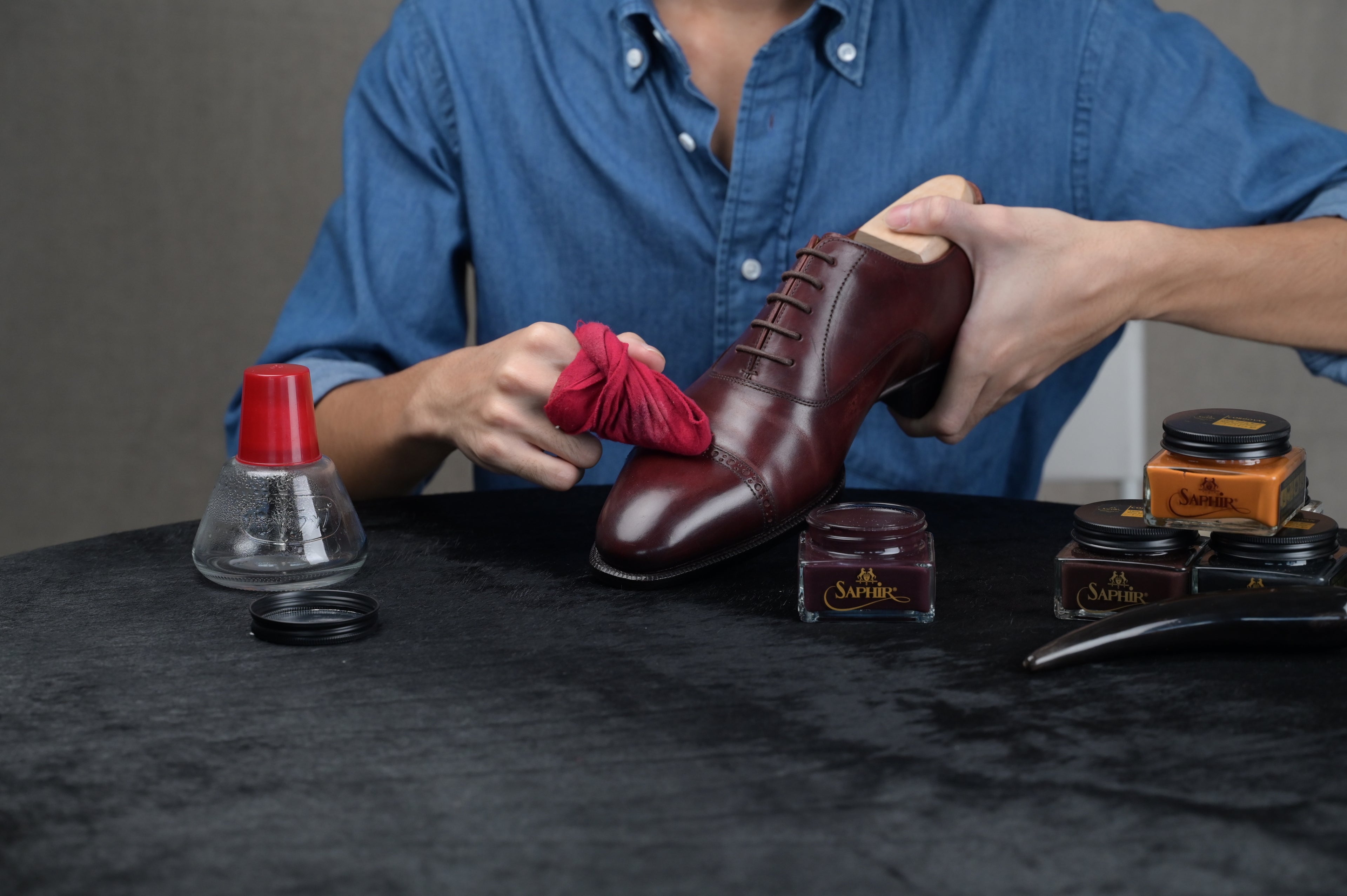 Cordovan leather has a very high oil content compared to other leathers. This means that using the right products to take care of Cordovan is extremely important and crucial to prevent any unwanted damages to it. Use the Saphir Médaille d’Or Cordovan that has been specially formulated for Cordovan leather to prevent the leather from drying out.