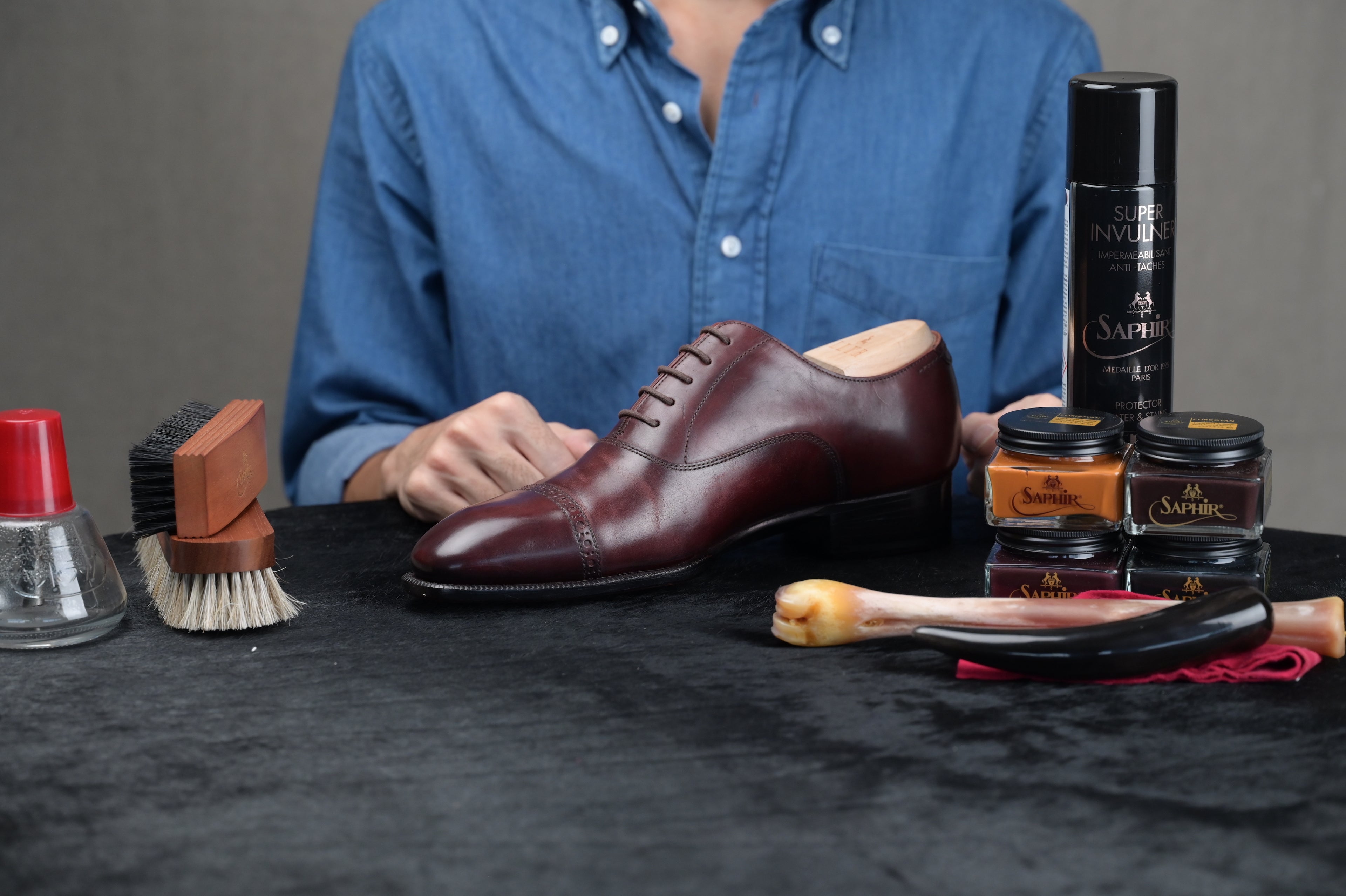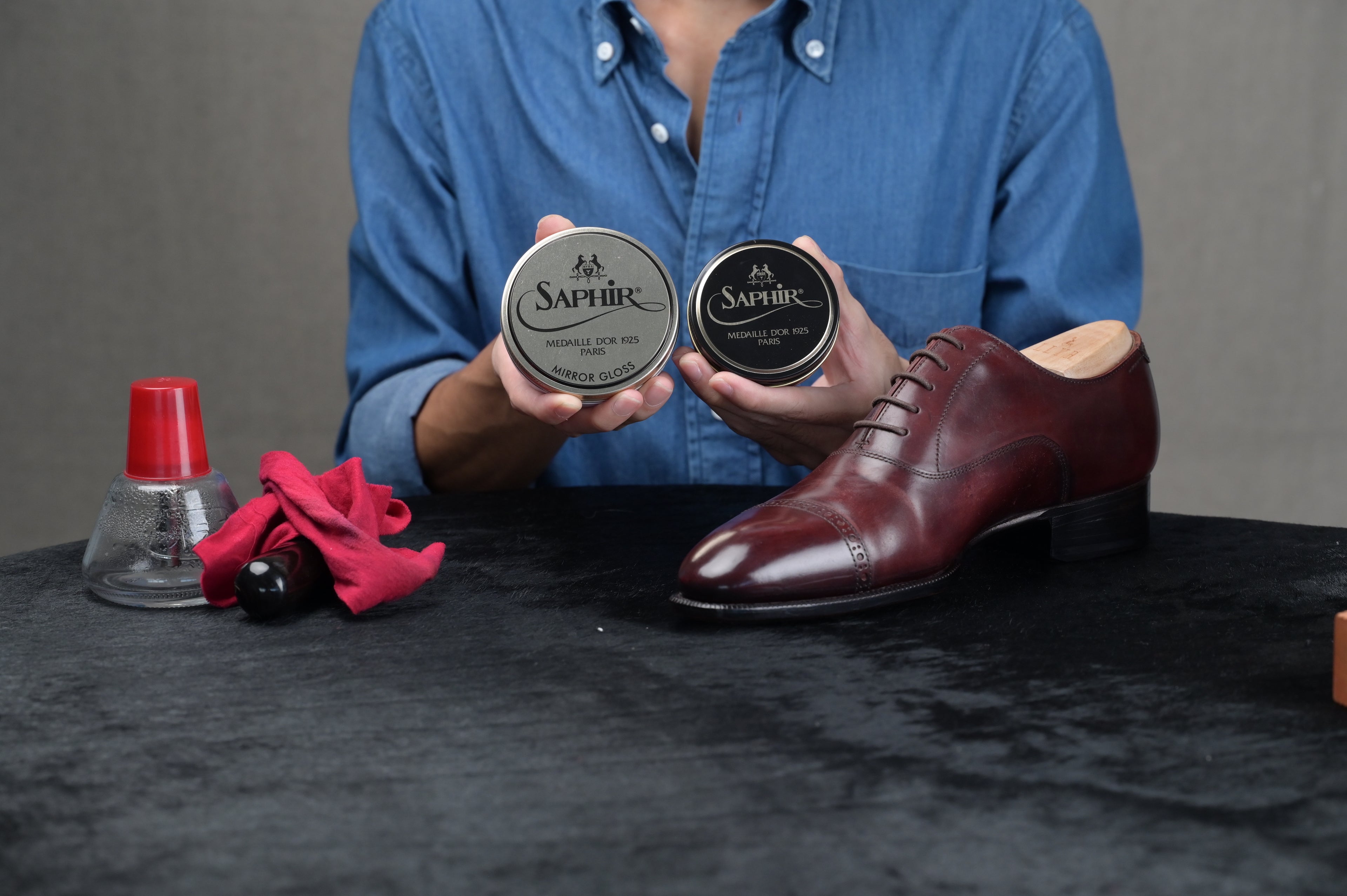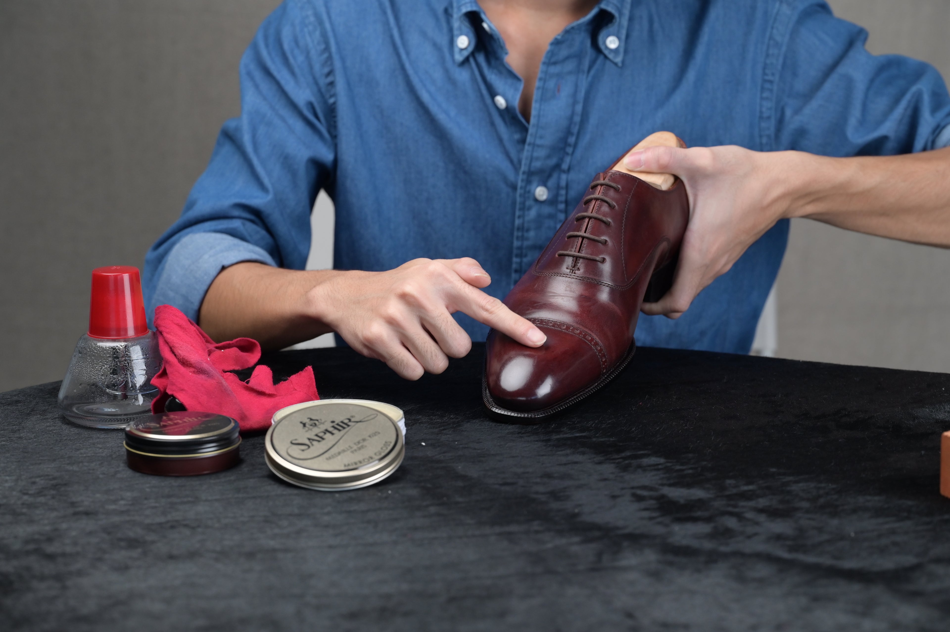 Cordovan leather has a very high oil content compared to other leathers. This means that using the right products to take care of Cordovan is extremely important and crucial to prevent any unwanted damages to it. Use the Saphir Médaille d’Or Cordovan that has been specially formulated for Cordovan leather to prevent the leather from drying out.