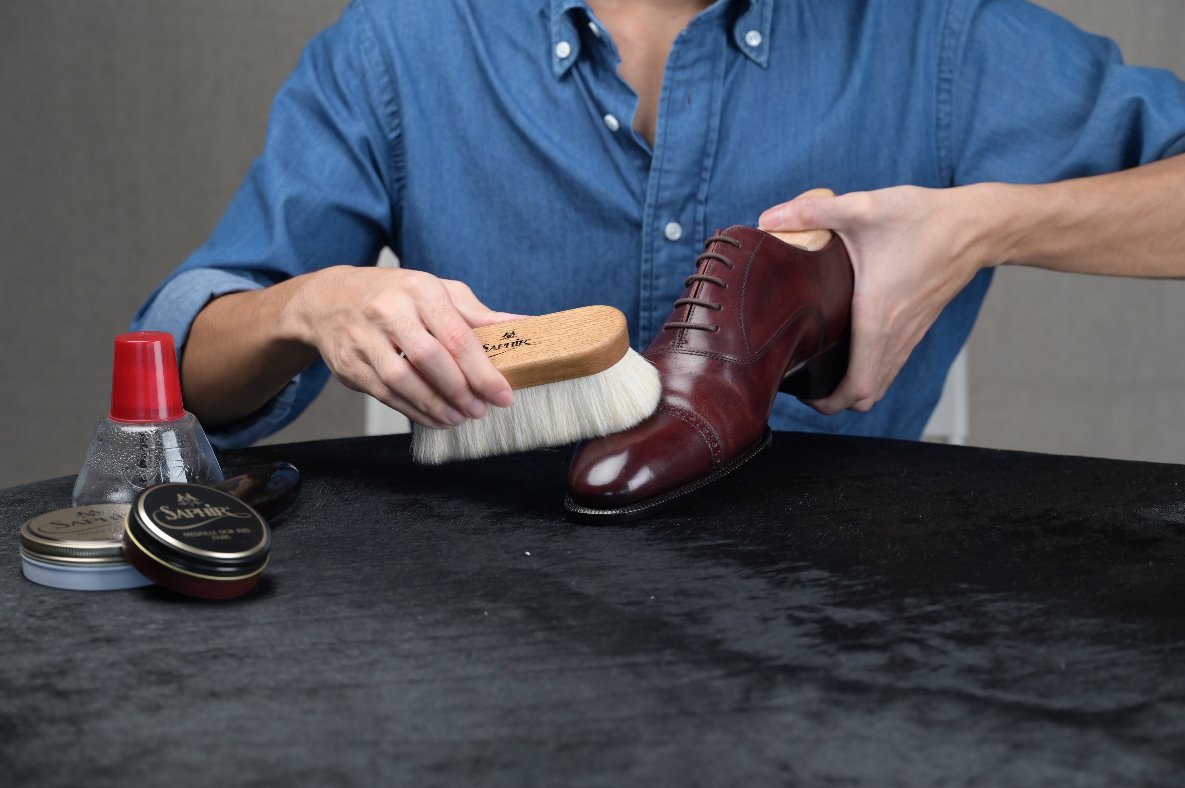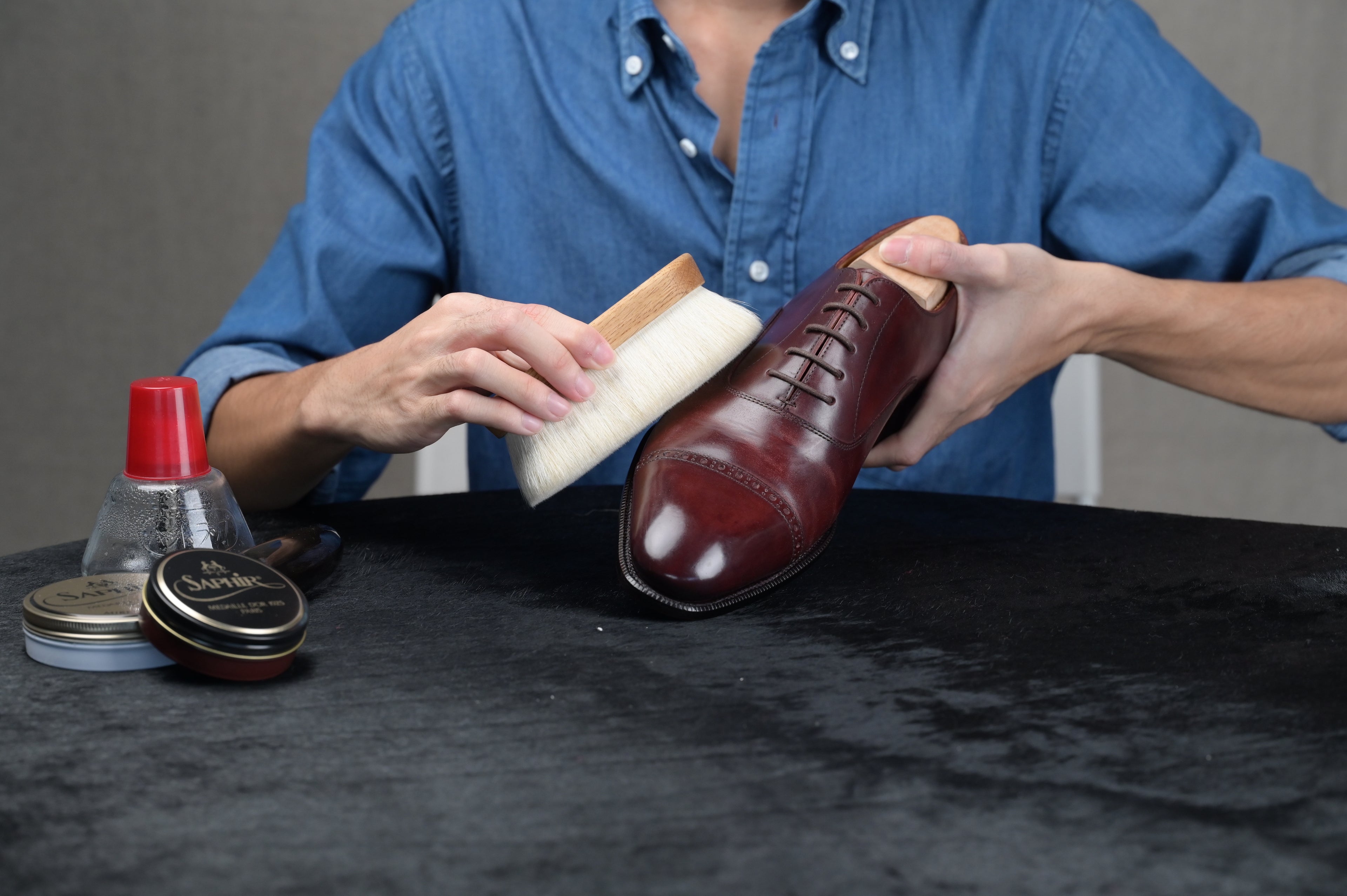 Brushing with a Goat Hair Brush helps to spread the oil all over the shoes, adding gradation and a natural shine to them.