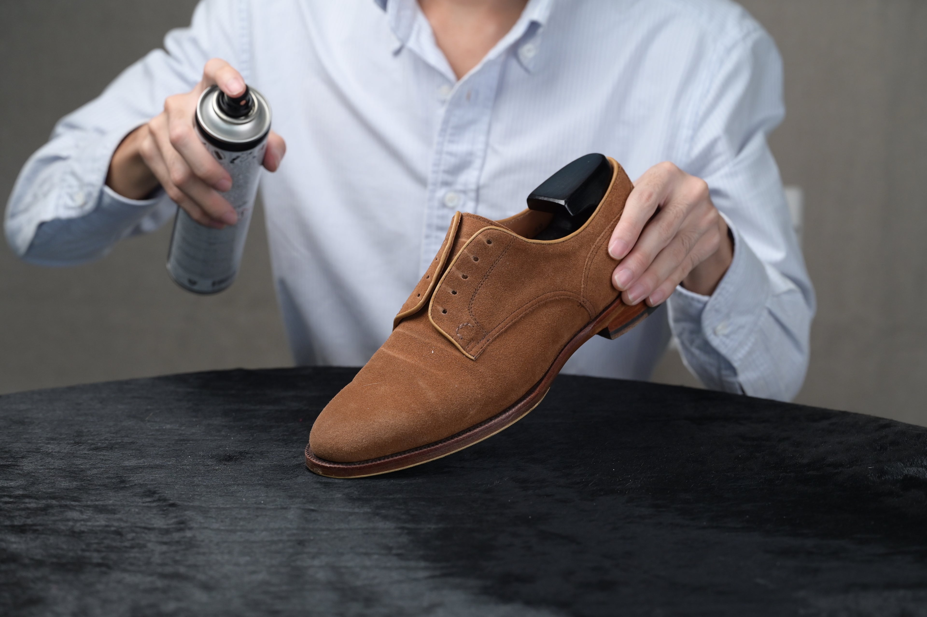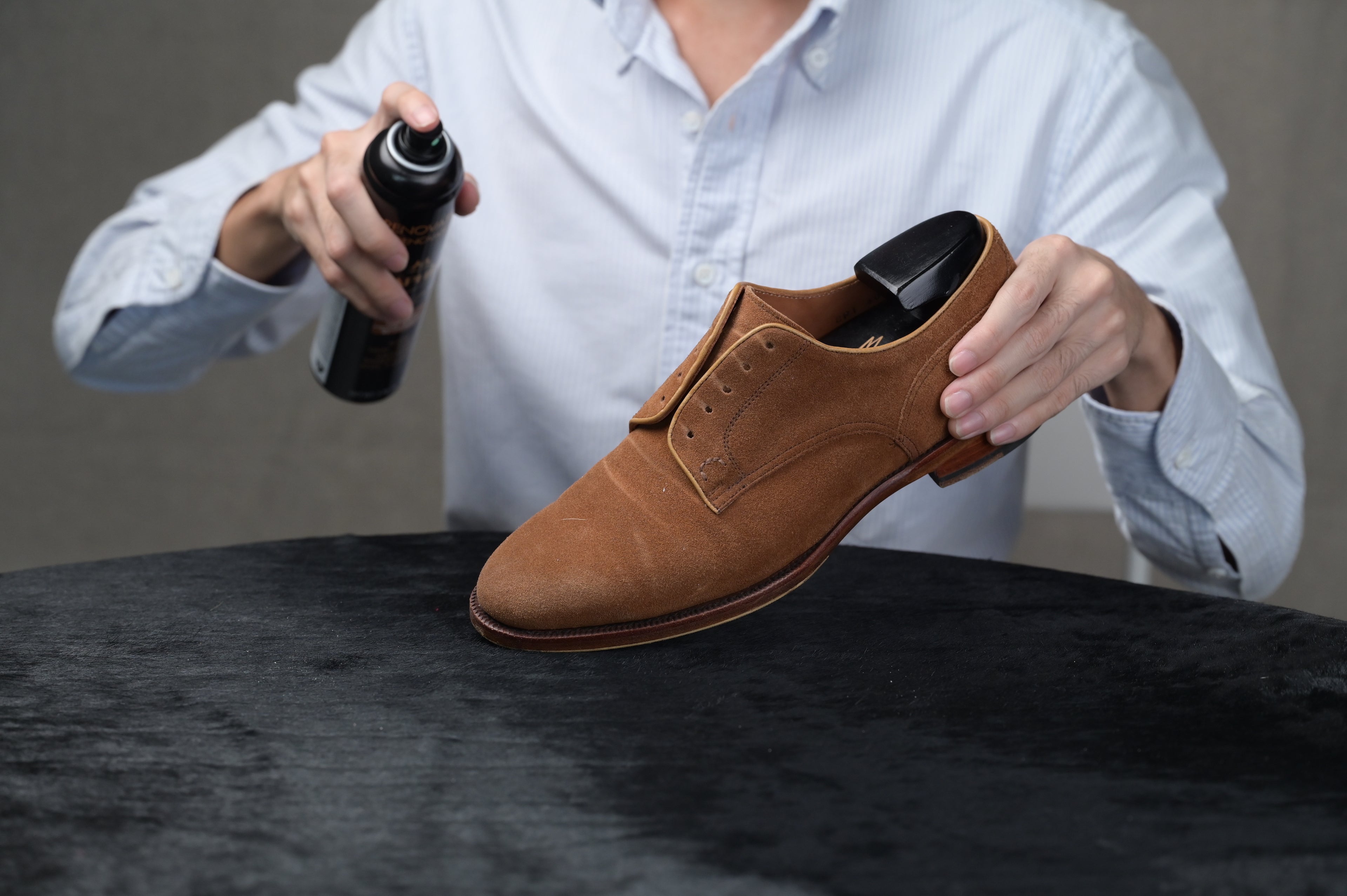 Protecting and waterproofing suede or nubuck leather is an essential step as these leathers by nature are easily stained by water. This also prevents future stains from occurring.